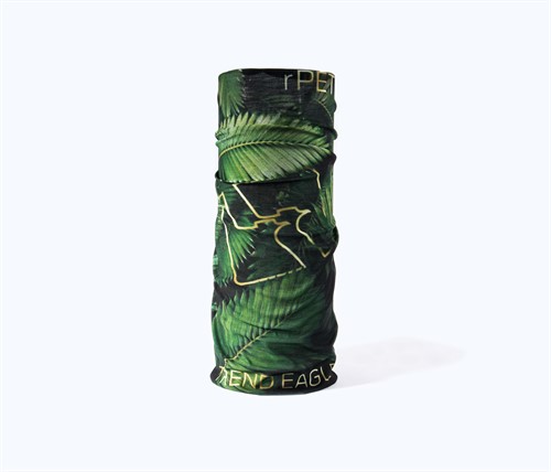 Multi headwear huivi, noin 25x50 cm, 140 g/m2. Yksityis pakataan paperirullaan kierrätetysta paperista, 1-väri painatuksella. Painettu manuaali paperirullan takapuolella.