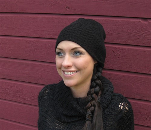Suosittu perusmalli. Joustiin neulottu pipo. Kuudella saumalla, pitkä sauma takana. Yksi koko.