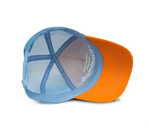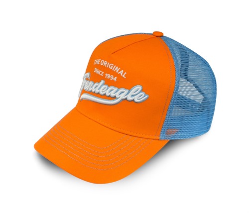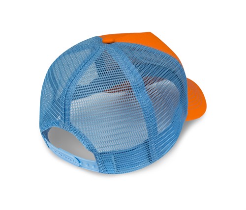 Stick ut som highlightad text med keps i fluorescerande orange och blå kontrastfärg. Highlight är en klassisk truckerkeps med högre front och utan mittsöm fram. Luftig mesh, förböjd skärm och snapback-spänne för justering av storlek. Välj mellan ca 25 st olika tygfärger och ca 40 st färger på mesh/snapback.