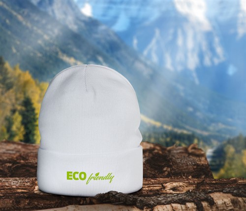 En slätstickad mössa med uppvik och garn i ekologisk bomull. Ett utmärkt alternativ för dig som har ett mer hållbart tänkande. Märkes lämpligen med brodyr eller etikett, men kan även transfertryckas.